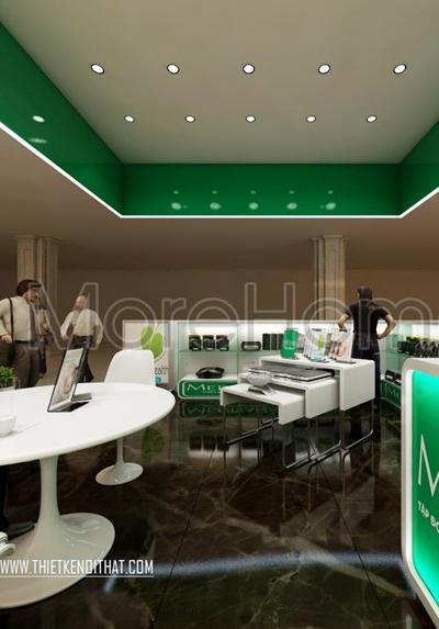 Xanh và trắng là 2 tông màu chủ đạo nổi bật trong thiết kế nội thất showroom thiết bị y tế tại Royal City. Sau đây chúng ta cùng tìm hiểu cụ thể hơn về thiết kế showroom này.