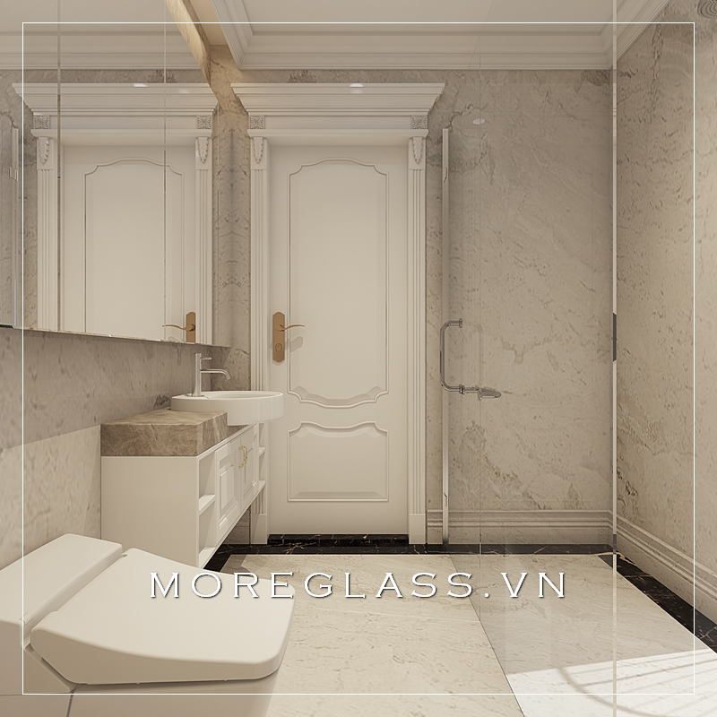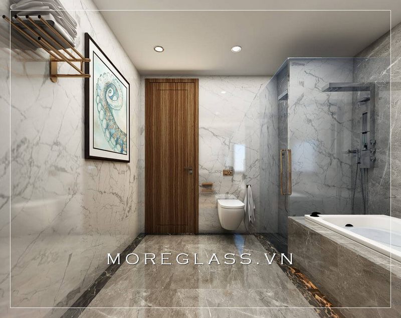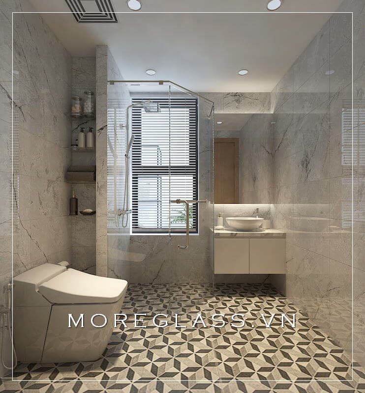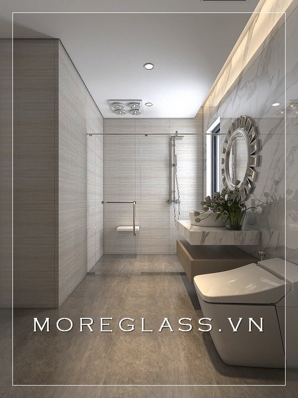 Mẫu phòng tắm kính cường lực cao cấp với kiểu dáng đơn giản nhưng tinh tế cho căn hộ chung cư, nhà phố cao cấp