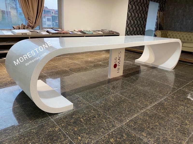Mẫu quầy lễ tân cong ốp đá liền khối không mối nối solid surface LG Hàn Quốc.