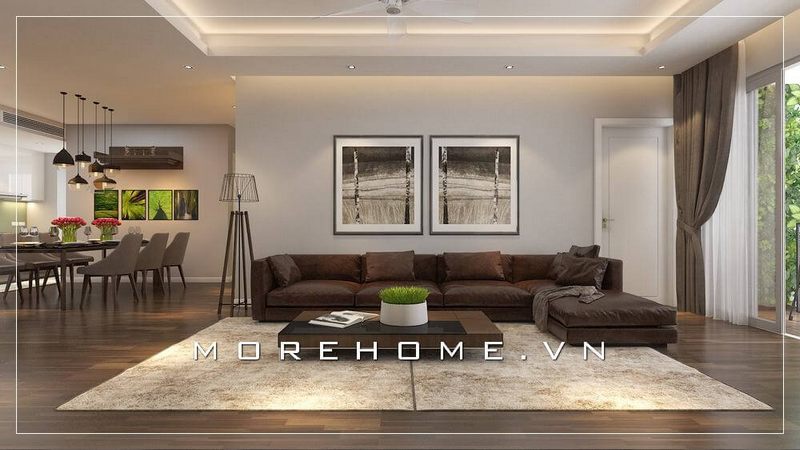 Lựa chọn mẫu sofa bọc da cao cấp sắc nâu trầm với phong cách thiết kế hiện đại cho không gian phòng khách chung cư thêm sang trọng, tiện nghi.