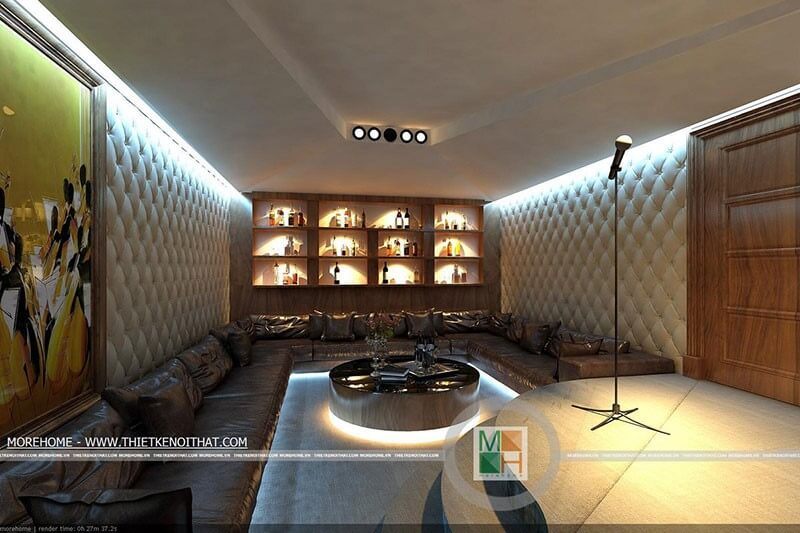 Mẫu sofa chữ u bọc da màu nâu sang trọng cho phòng karaoke