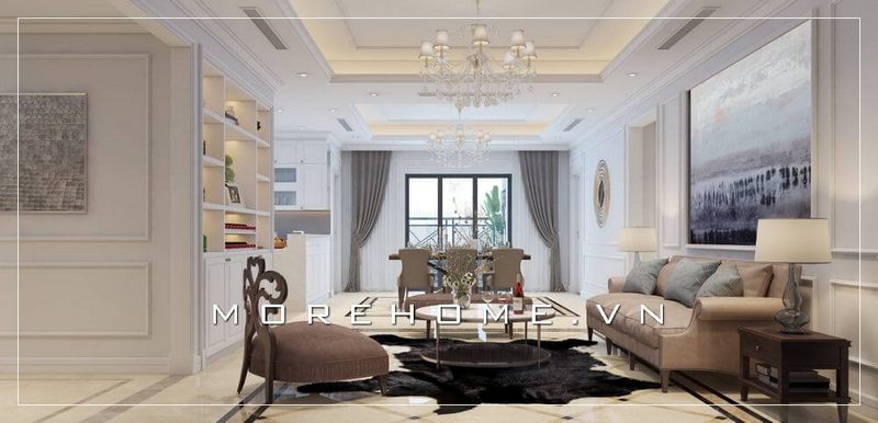Trang trí nội thất phòng khách của chung cư cao cấp theo phong cách tân cổ điển sang trọng sẽ làm nổi bật cá tính đẳng cấp của gia chủ.
